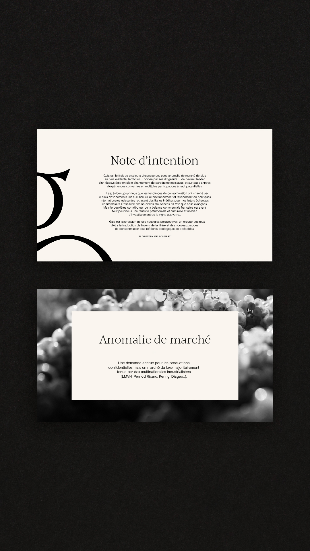 Identité visuelle pour Gaïa, société regroupant différentes entreprises lié au monde du vin.