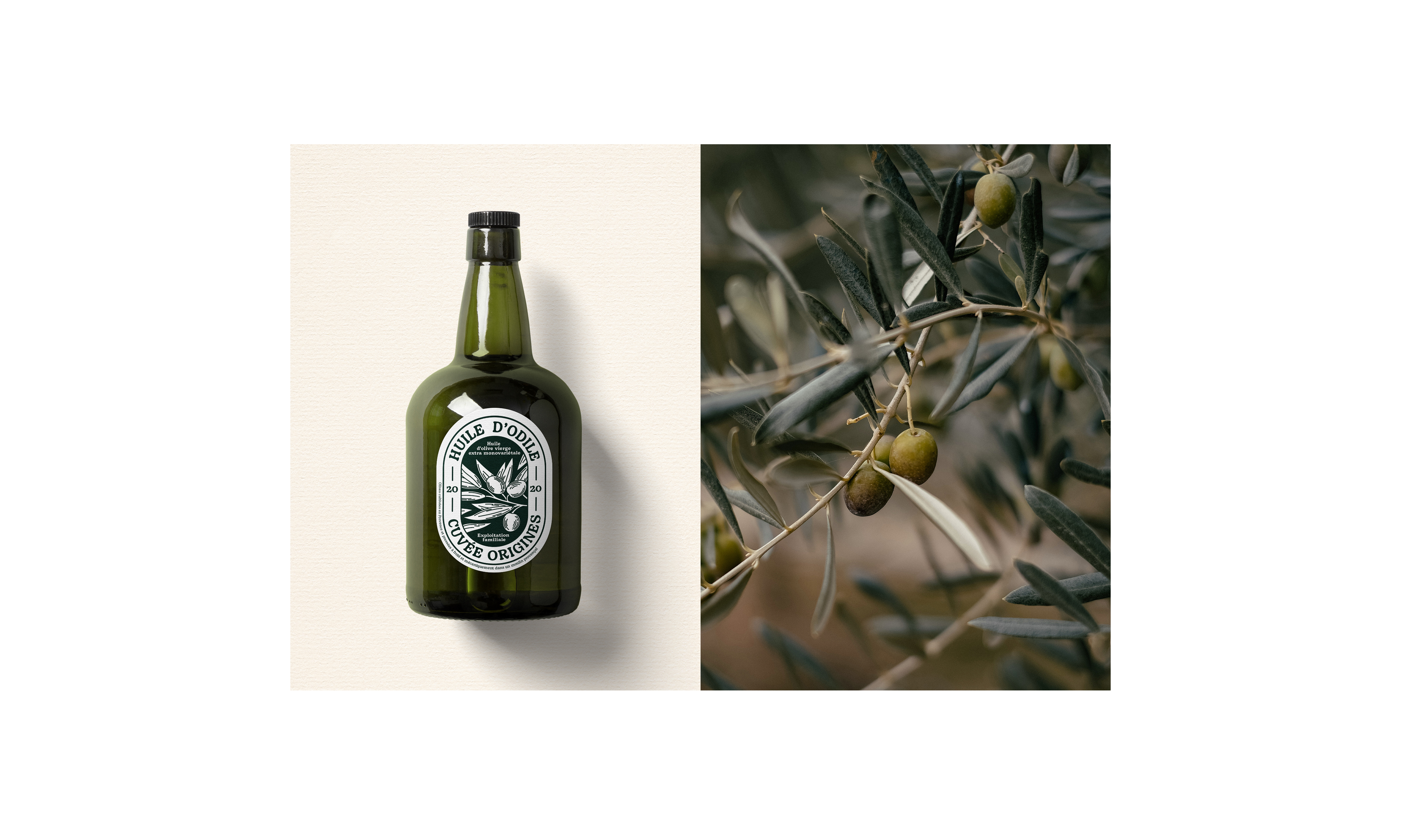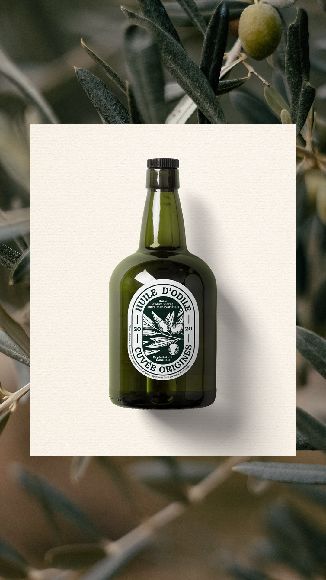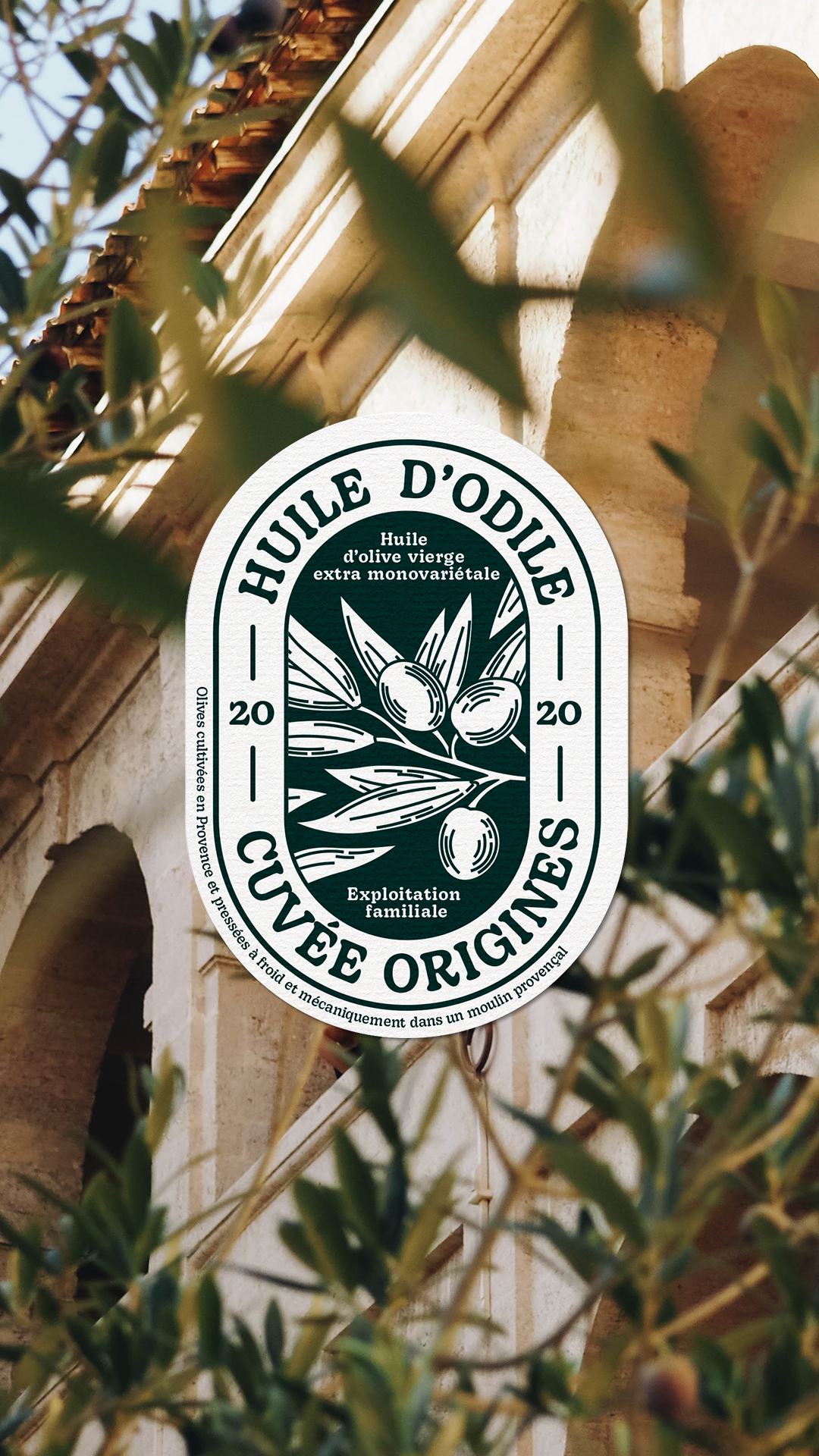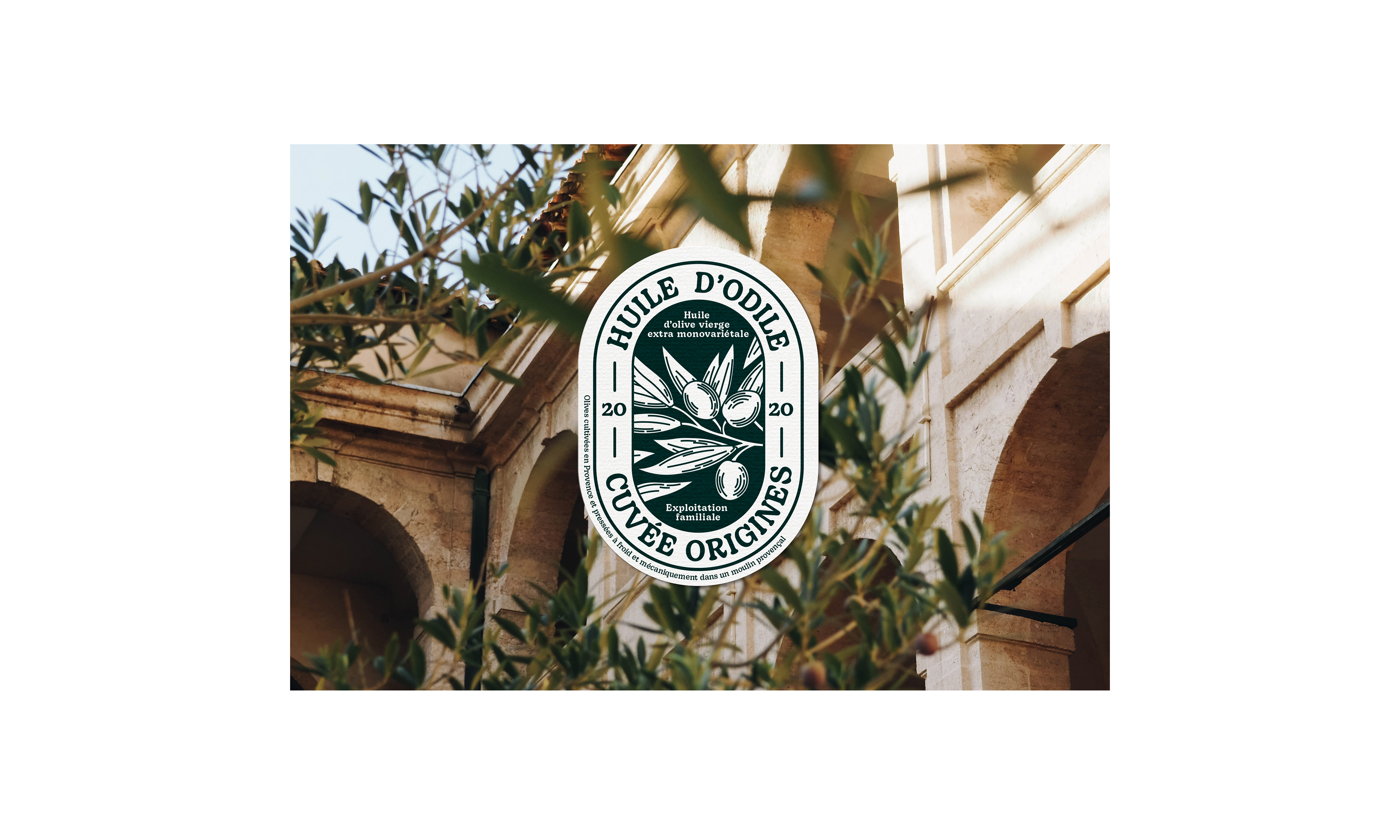 Étiquette pour l’Huile d’Odile, une huile d’olive familiale.