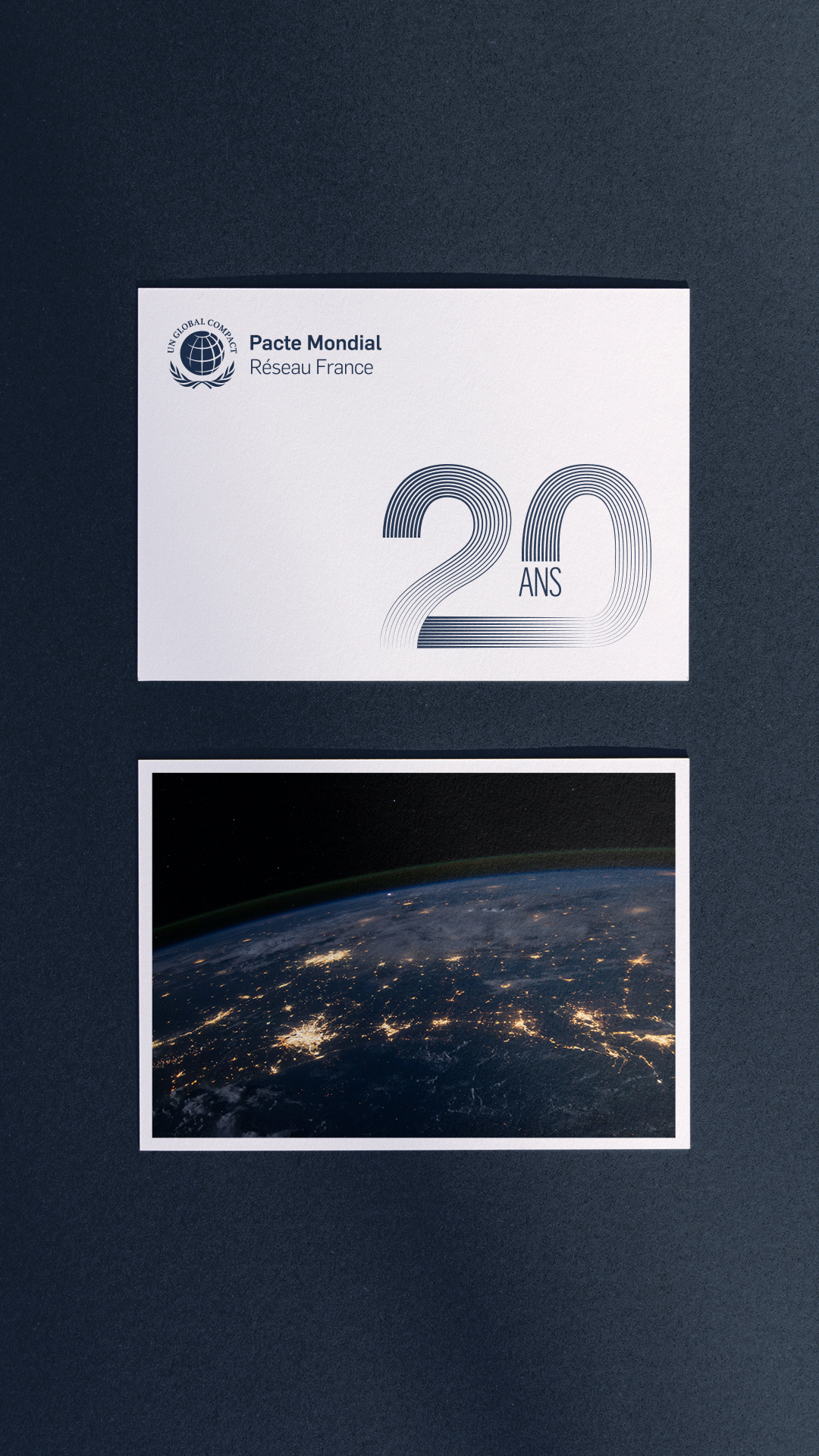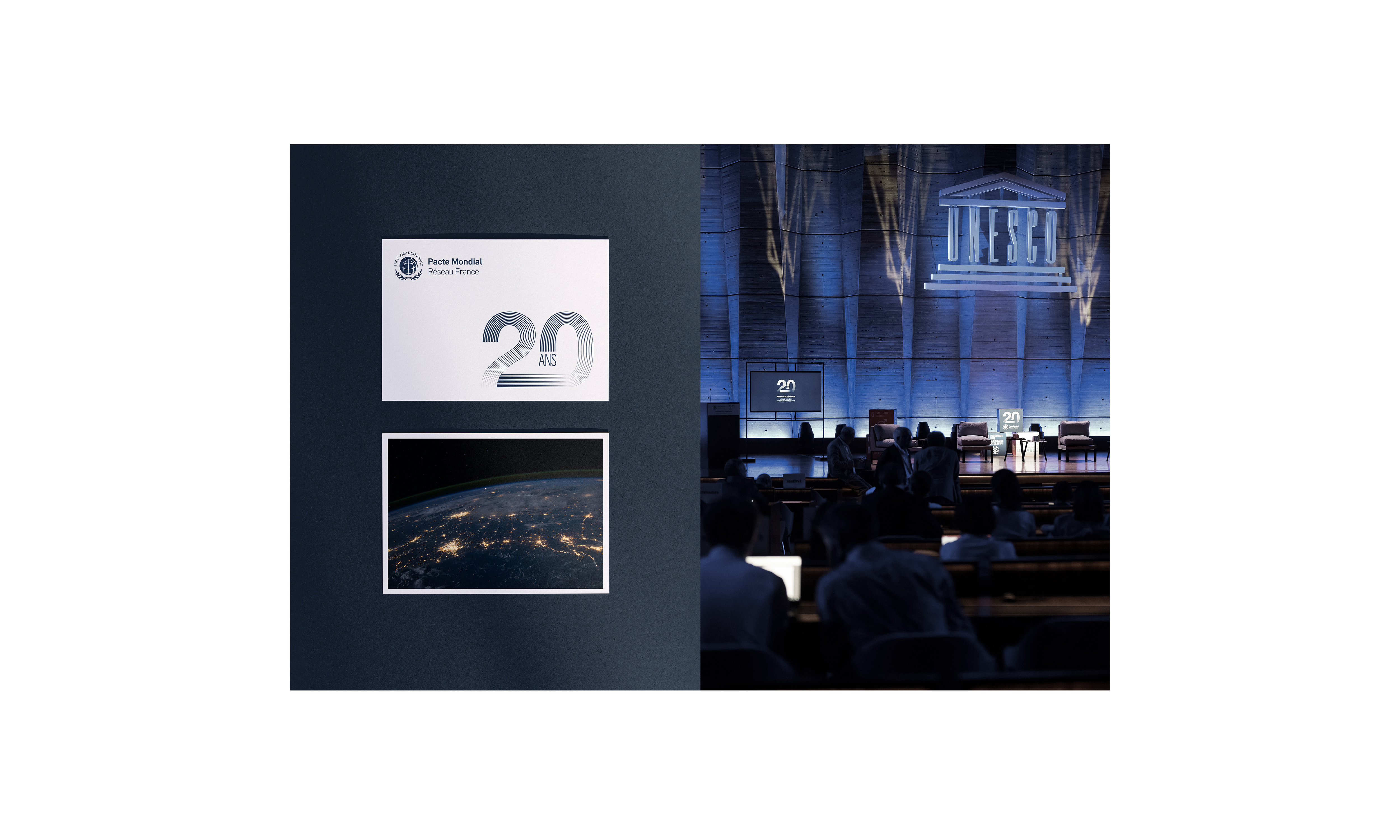 Logotype événementiel pour les 20 ans du Réseau Français, du Pacte Mondial des Nations Unies.